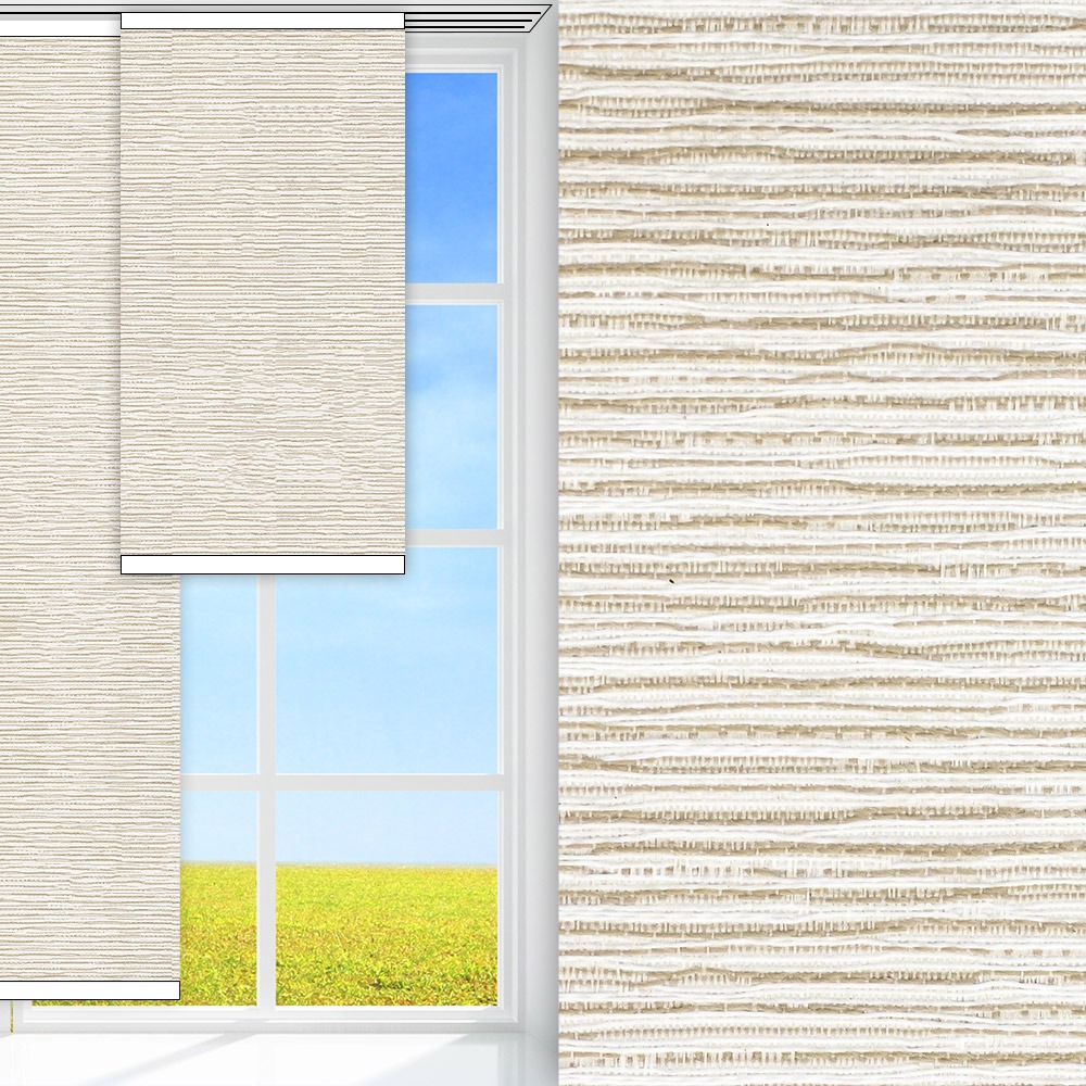 Schöner Stoff in der Farbe Beige. Dieser Stoff lässt viel Licht rein und Blicke draussen. Einfach zu pflegen, denn der Stoff ist feucht abwischbar. Mittlere Effektivität bei der Temperaturdämmung. Im Sommer kann eine Aufheizung des Raumes verhindert werden. Im Winter können heizkosten eingespart werden. Maximale Breite des Stoffes pro Anlage: 300 cm. Für Übergrössen werden Stoffbahnen zusammengenäht, falls erforderlich. Dieser Stoff verfügt über ein eingewebtes Muster in der Art: Linien & Wellen.